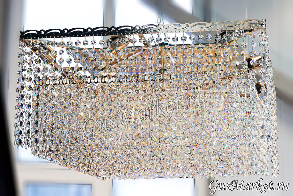 Люстра производства г.Гусь-Хрустальный с зеркалом под основанием. Крепление на крючок. Высоту можно изменять за счет длинны хрустальных цепочек, сделаем под заказ. Поставляется в собранном виде, вам остается только повесить люстру.