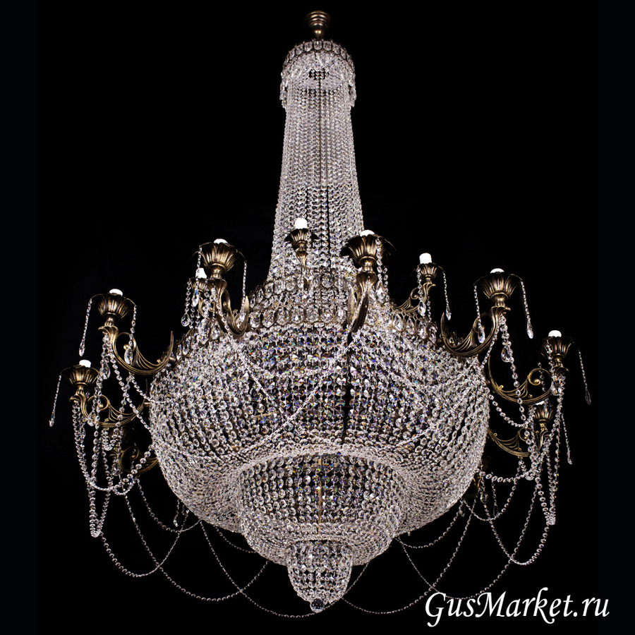 Хрустальная люстра изготавливается на заказ. Свечи в два яруса