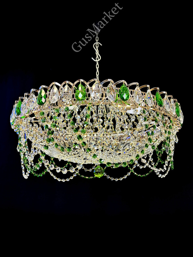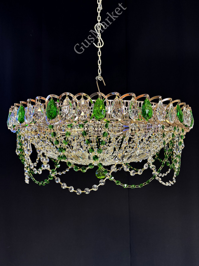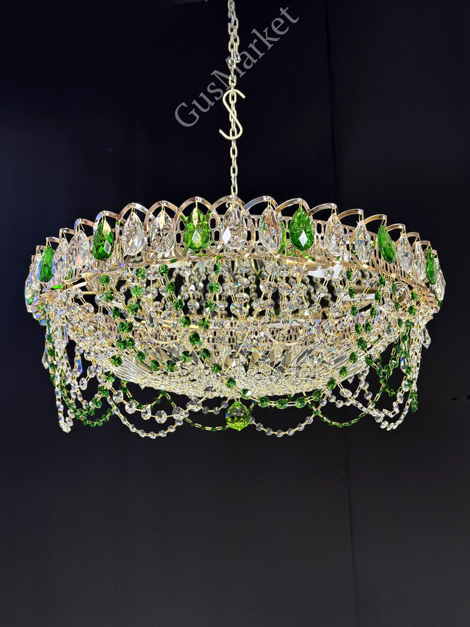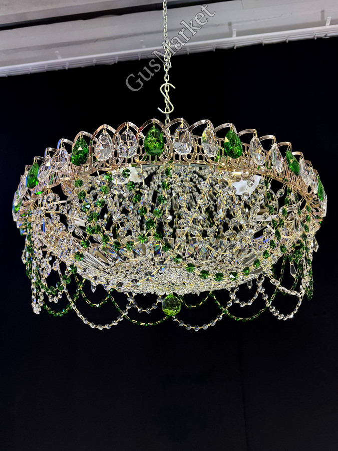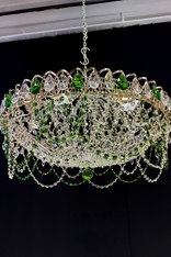 диаметр 60см, высота 25 см, 6 ламп. Фурнитура "Золото", цветные вставки зеленые