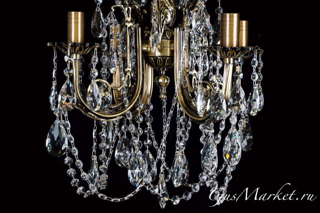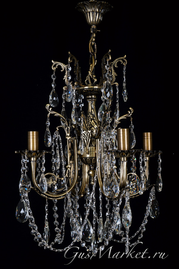 Люстра бронза и хрусталь. г.Гусь-Хрустальный. Поставляется в собранном виде. Люстра дополнительно украшена фигурками. Крепление на крючок.