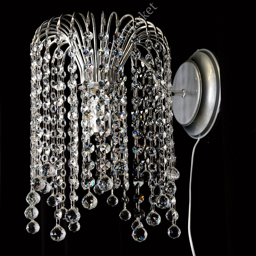 Хрустальный бра. Лампочка направлена вниз. Возможно добавление цветного камня.