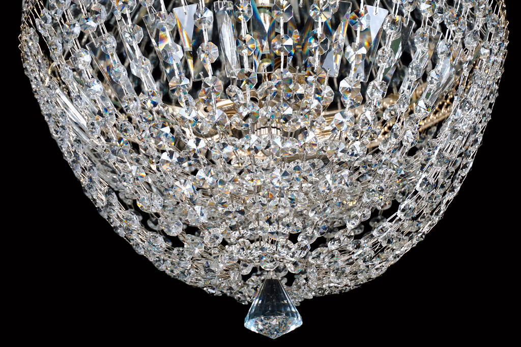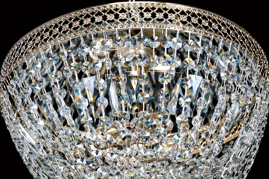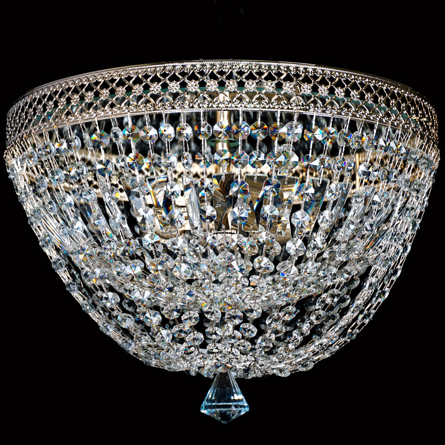 Хрустальная люстра г. Гусь-Хрустальный. Люстра с двойным куполом из хрустальных подвесок. С зеркалом. Крепление на крючок. Поставляется в собранном виде.