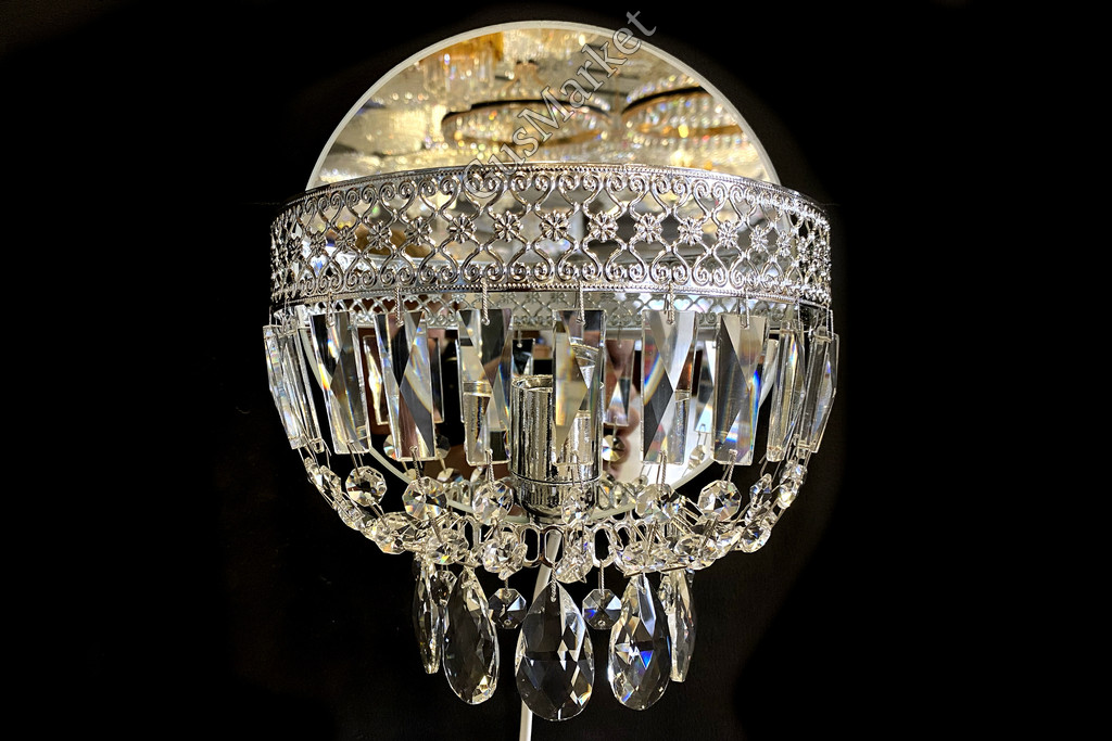 Хрустальный бра. Производство Гусь-Хрустальный. Включатель на проводе. Крепление на двух саморезах (за зеркалом).