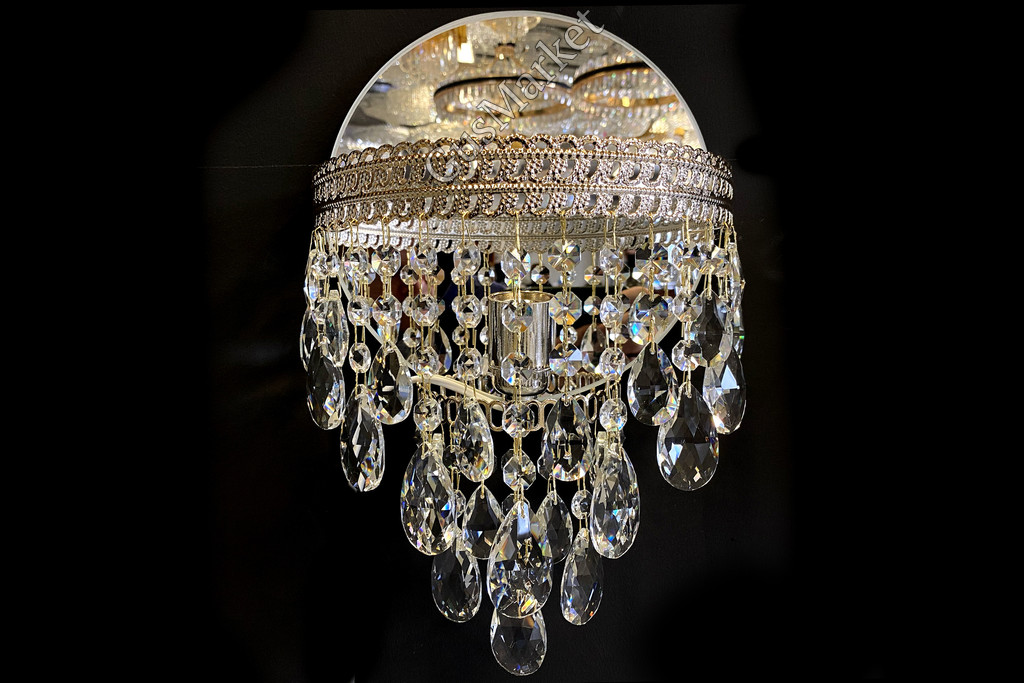 Хрустальный бра. Производство Гусь-Хрустальный. Включатель на проводе. Крепление на двух саморезах (за зеркалом).