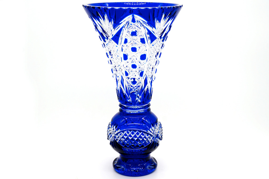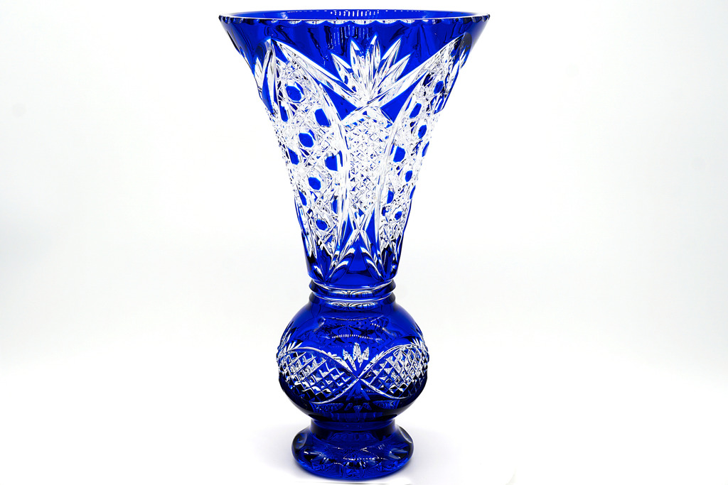 Ваза хрустальная "Тюльпан", производства Бахметевский Хрустальный Завод, цвет синий. Индивидуальная, ручная работа.