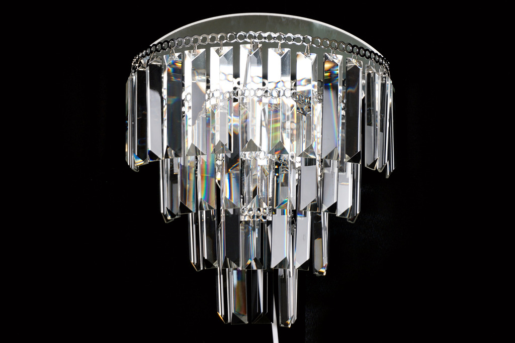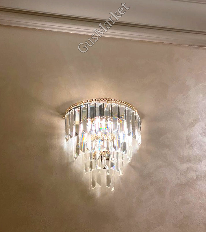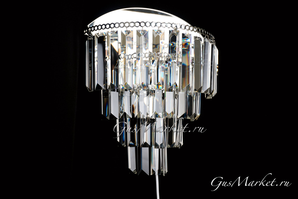 Хрустальный бра. Лампочка направлена вверх. Подключение на проводе. Возможно добавление цветного камня.