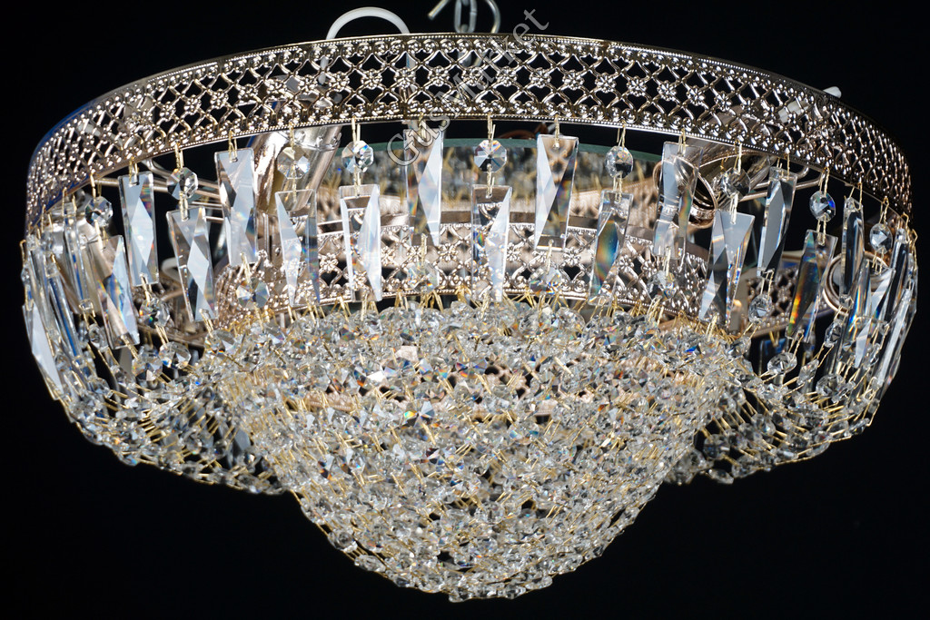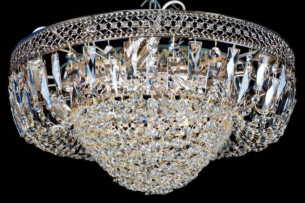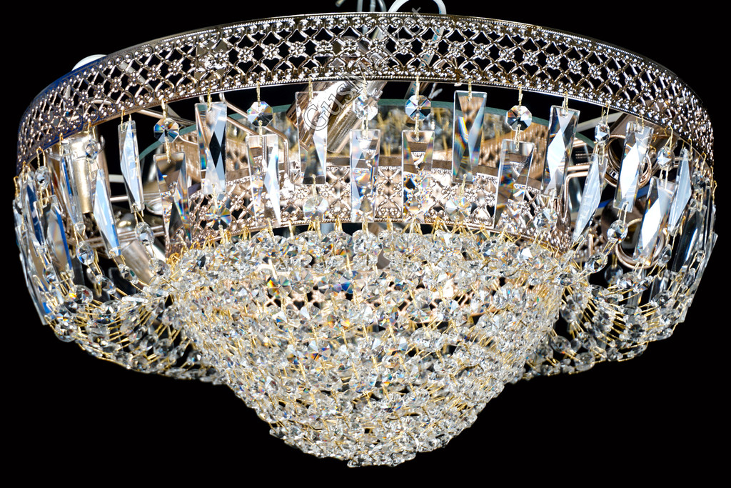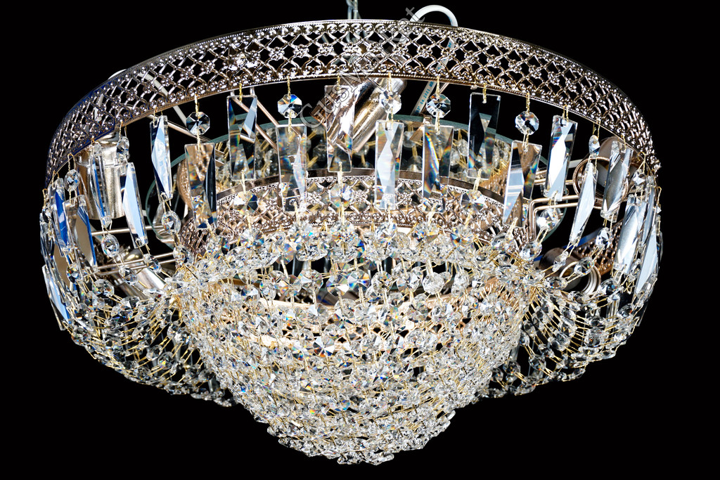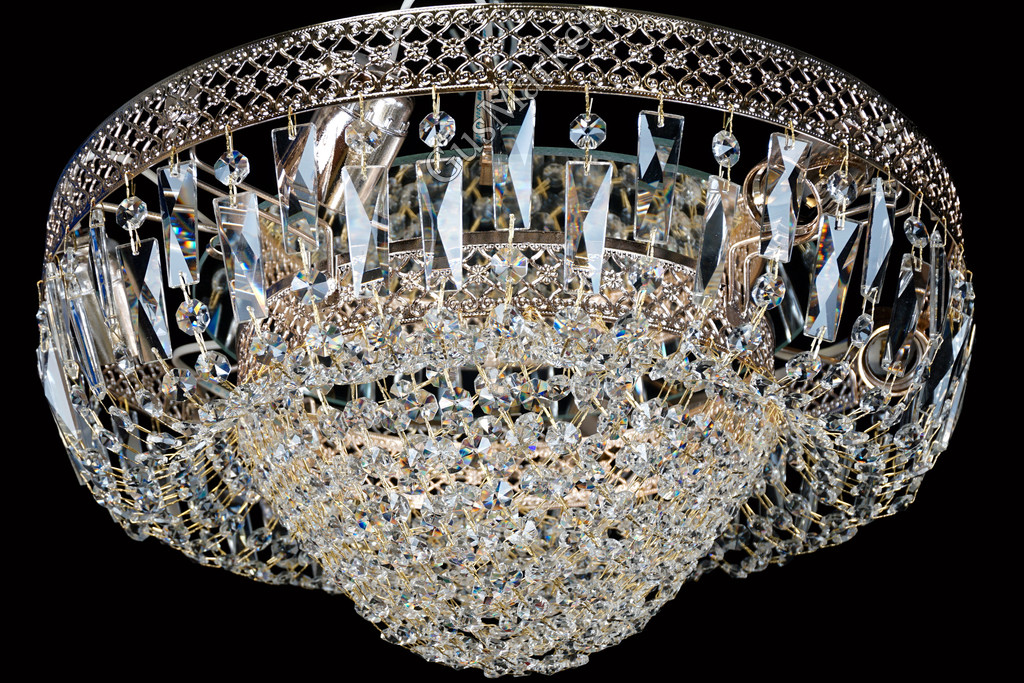 Люстра с зеркалом. Зеркало придает дополнительную игристость хрусталю и делает комнату светлей.Возможно добавление цветного хрусталя: чайный, красный, синий, розовый, зеленый цвета (если не нашли в каталоге люстры с нужным вам хрусталем, указывайте в комментариях к заказу или уточняйте по телефону)