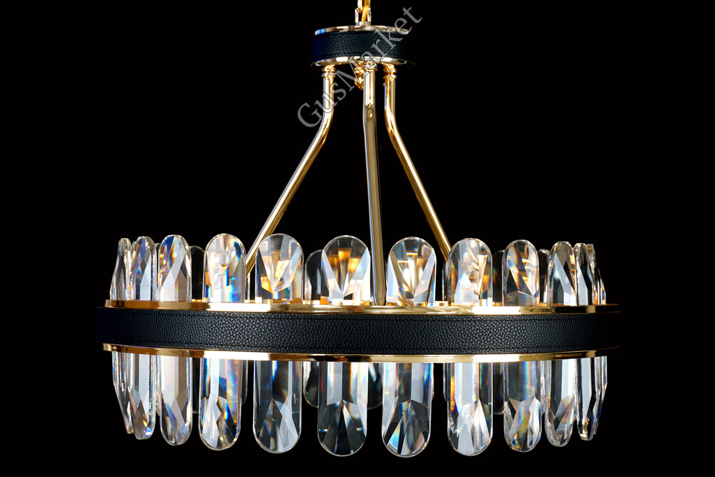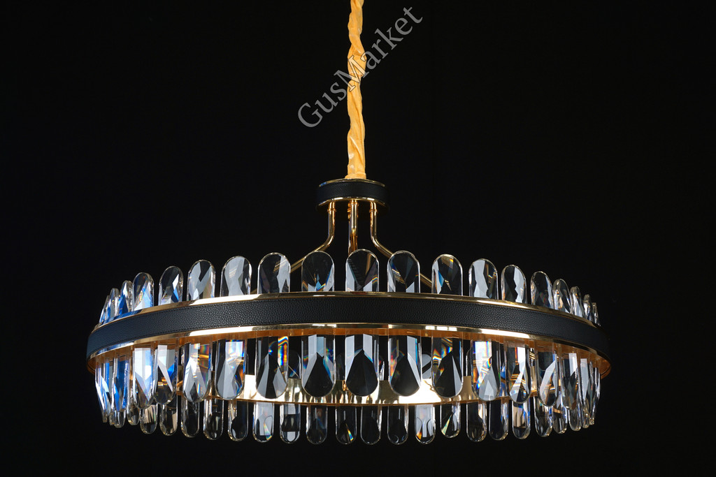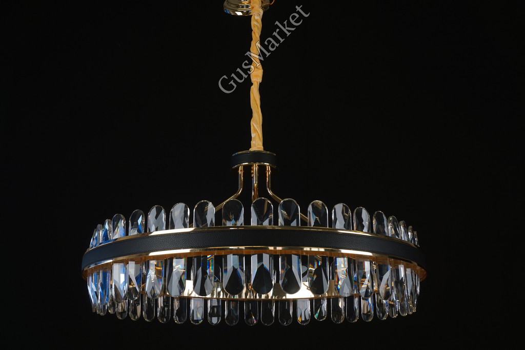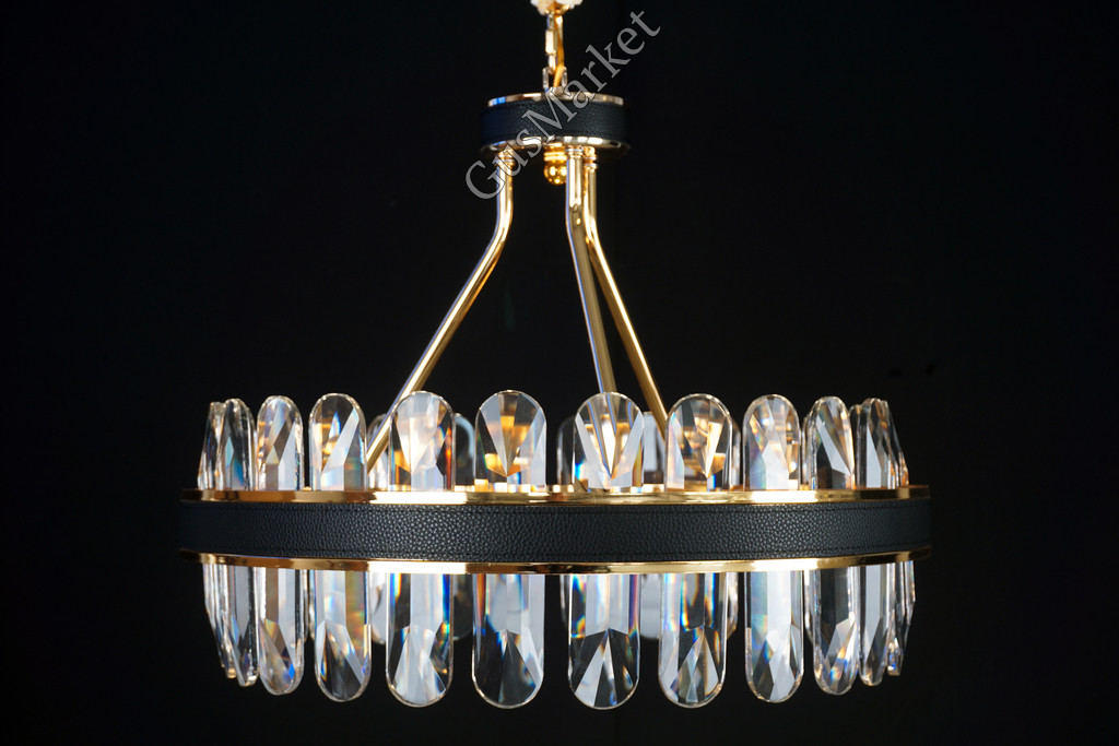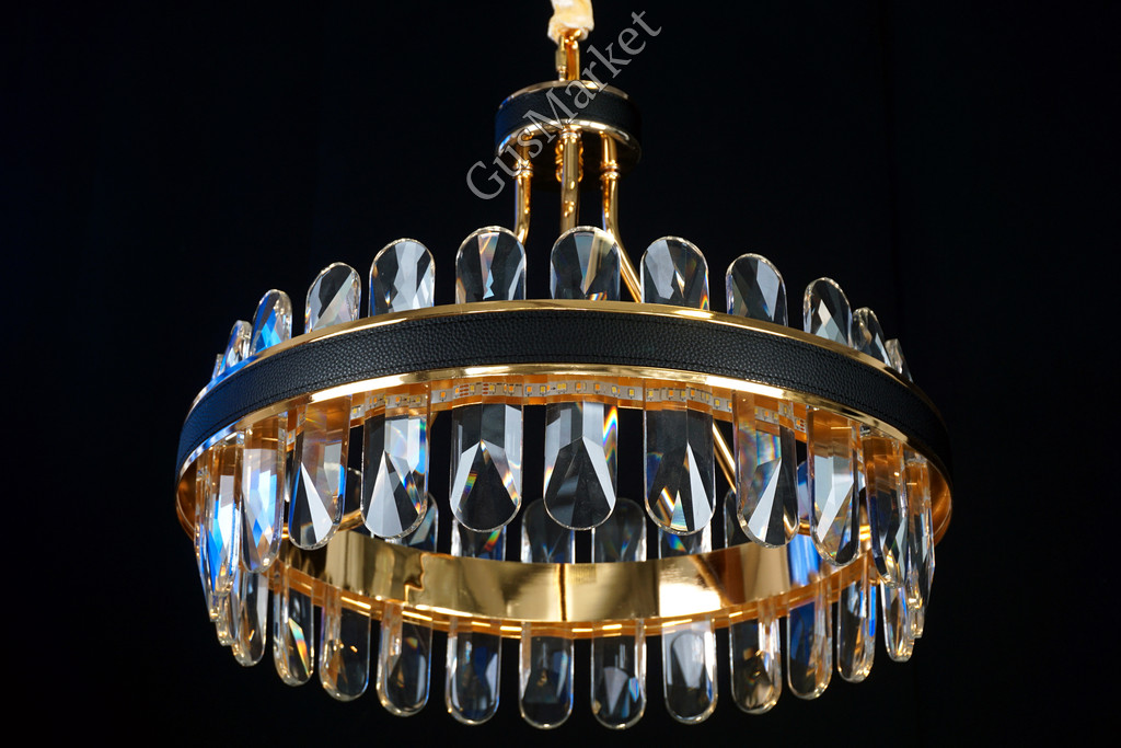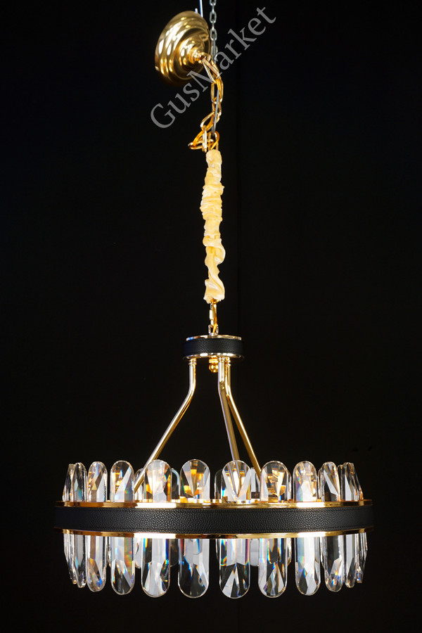 Люстра с хрустальными элементами. Свет - две диодных полосы. Поставляется в разобранном виде. Цепь можно делать короче и длиннее. Люстра производство Китай.