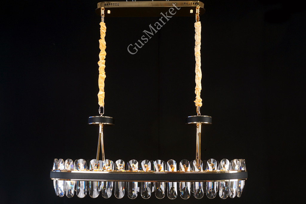 Люстра с хрустальными элементами. Свет - две диодных полосы. Поставляется в разобранном виде. Цепь можно делать короче и длиннее. Люстра производство Китай.
