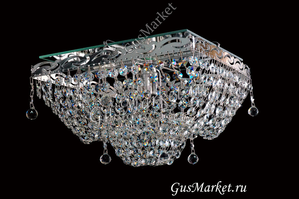 Люстра с зеркалом. Зеркало придает дополнительную игристость хрусталю и делает комнату светлей, а хрустальную люстру еще более яркой и привлекательной.