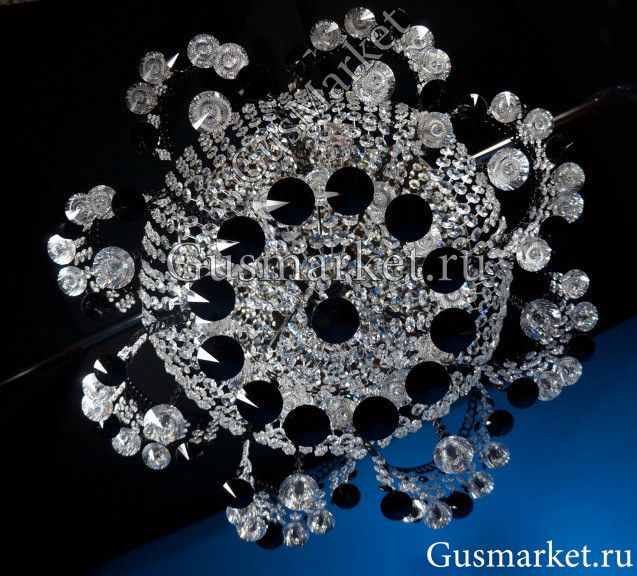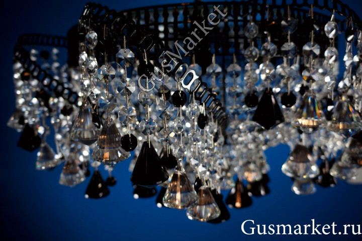 Интересная, модная люстра с зеркалом. Фурнитура черного цвета. подвески - пирамидки прозрачные и черные плюс добавление цветного хрусталя. Патроны - керамика. Крепление крючковое.