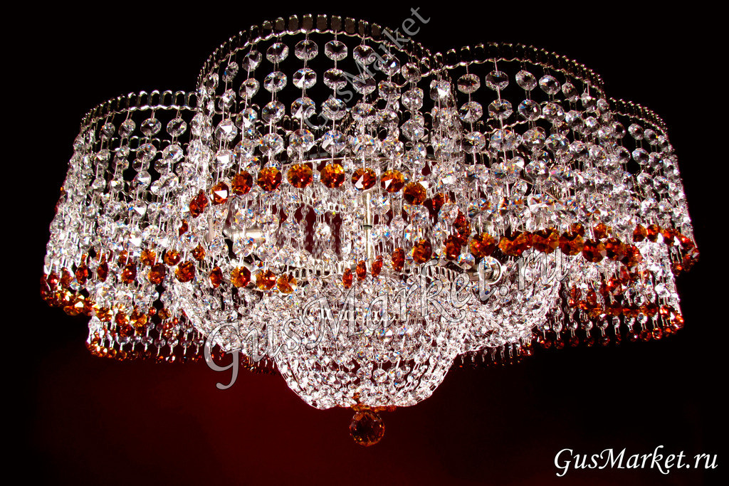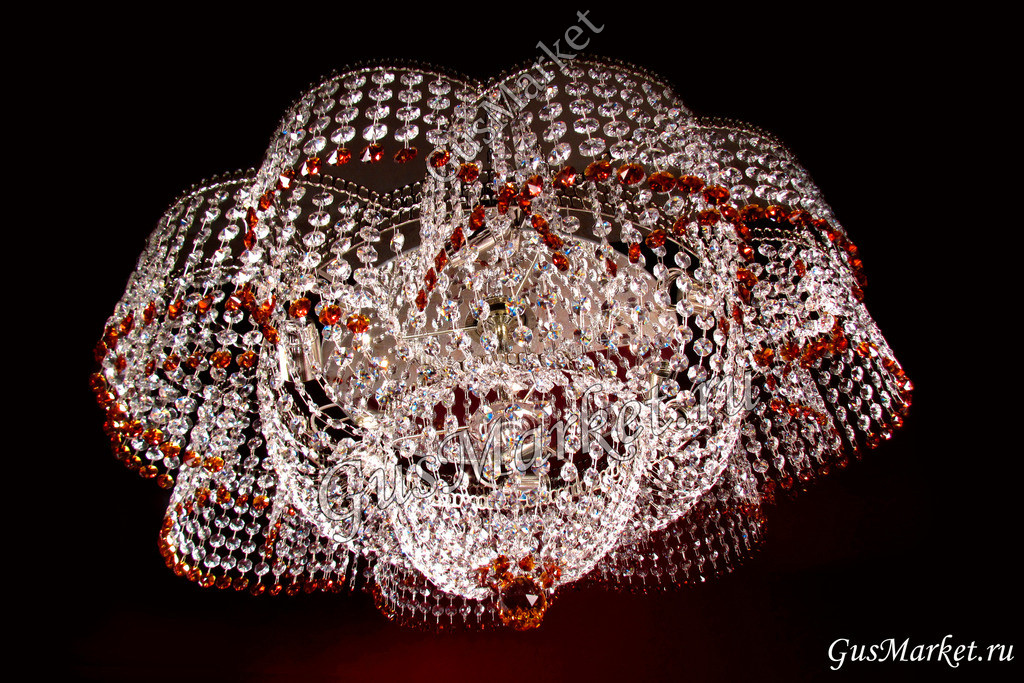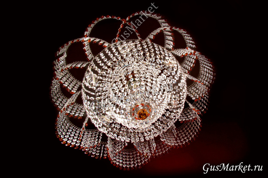 Хрустальная люстра "Лотос" с добавлением цветных хрусталиков. Производство Гусь-Хрустальный. Люстра с зеркалом, крепление крючковое