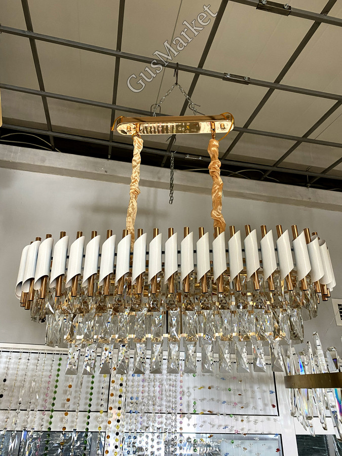 Люстра с хрустальными подвесками. Можно регулировать высоту от 40 см до 80 см. Производство Китай.
