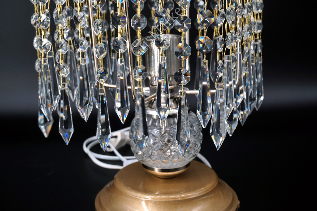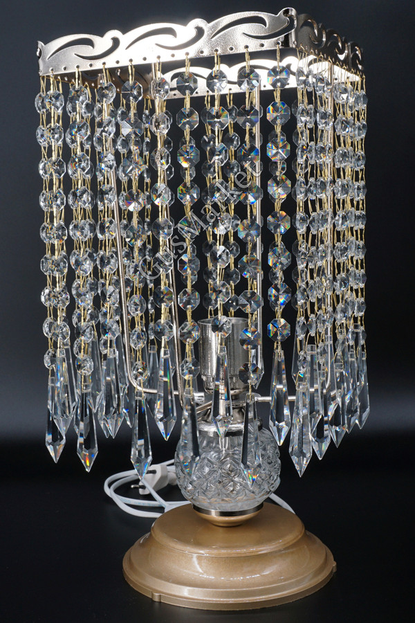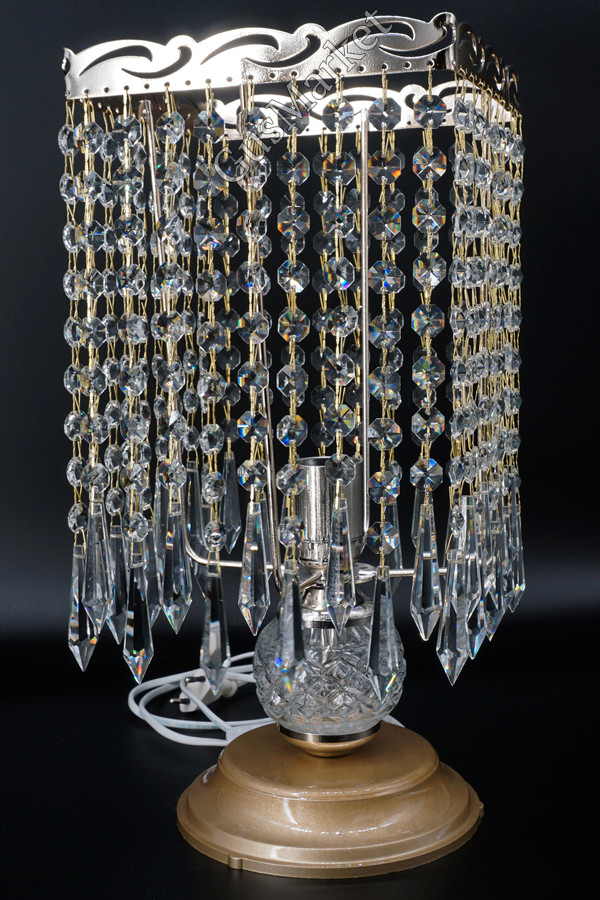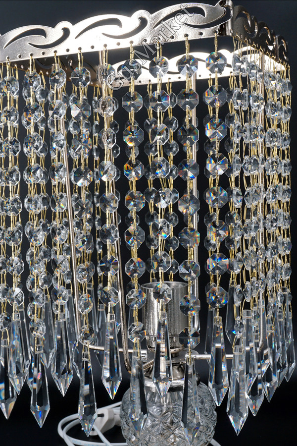 Шикарная настольная лампа! Достаточно объемная и высокая. Яркая, изумительный блеск кристаллов. Лампу вкрутила свечеобразную, чтоб было красивее. Брала в серебре. Положили запасную подвеску- пригодилась, у одного карандаша откололся кончик при доставке. Провод белый, мягкий. Здесь стоит дешевле . Прекрасный подарок - себе и любителям эстетичных вещей.