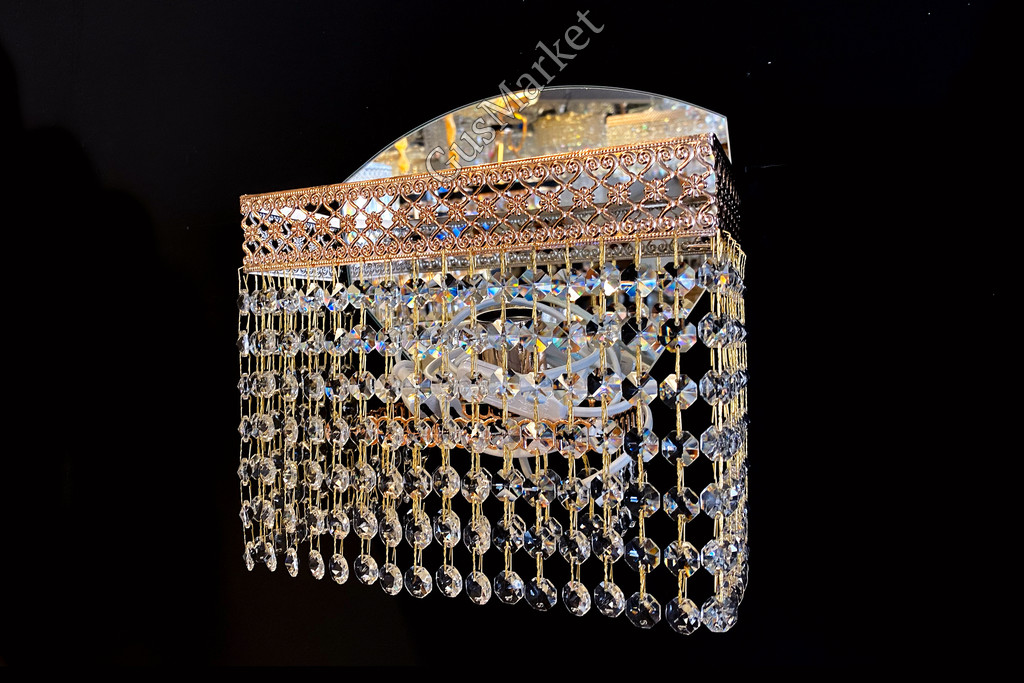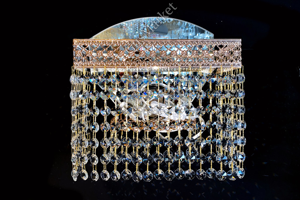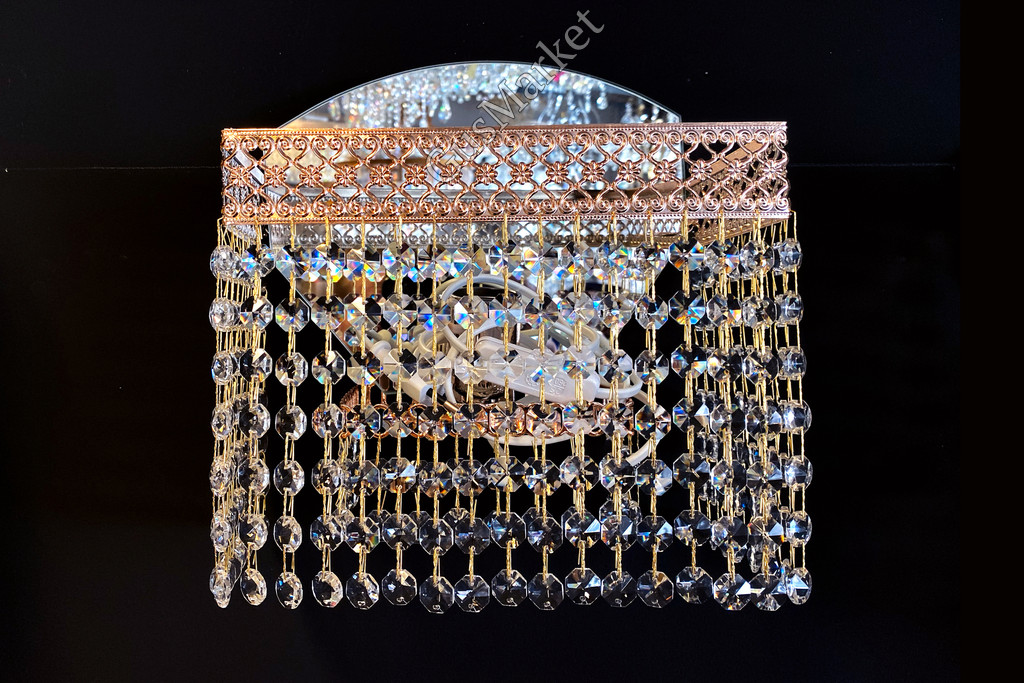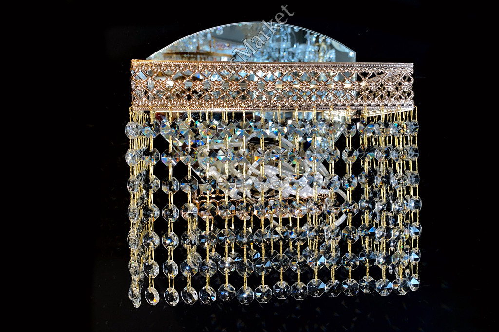 Хрустальный бра производство г. Гусь-Хрустальный. Включатель на проводе. Крепление на двух саморезах (за зеркалом). Возможно добавление цветного камня. Лампочка направлена вверх.