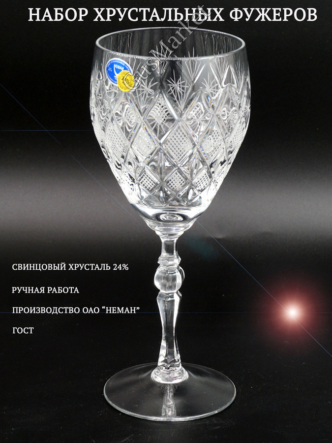 Хрустальные фужеры для интерьера это символ изыска и достатка. Прозрачные, звонкие, с коллекционной ценностью. Грани преломляют свет и подсвечивают содержимое при свете дня и искусственном освещении. Набор выполнен вручную от выдува до резки белорусскими стеклодувами и художниками. Изящная форма изделия, резка, особый хрустальный звон и игра света делают хрусталь прекрасным дополнением к любому празднику и отличным подарком!