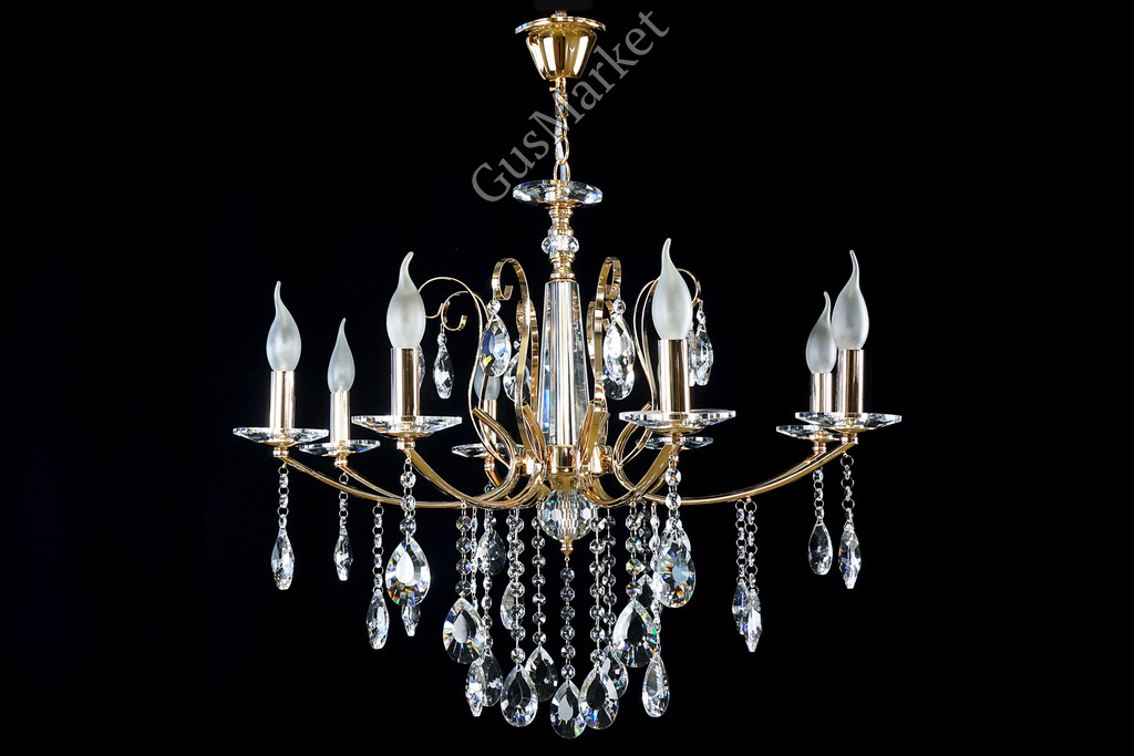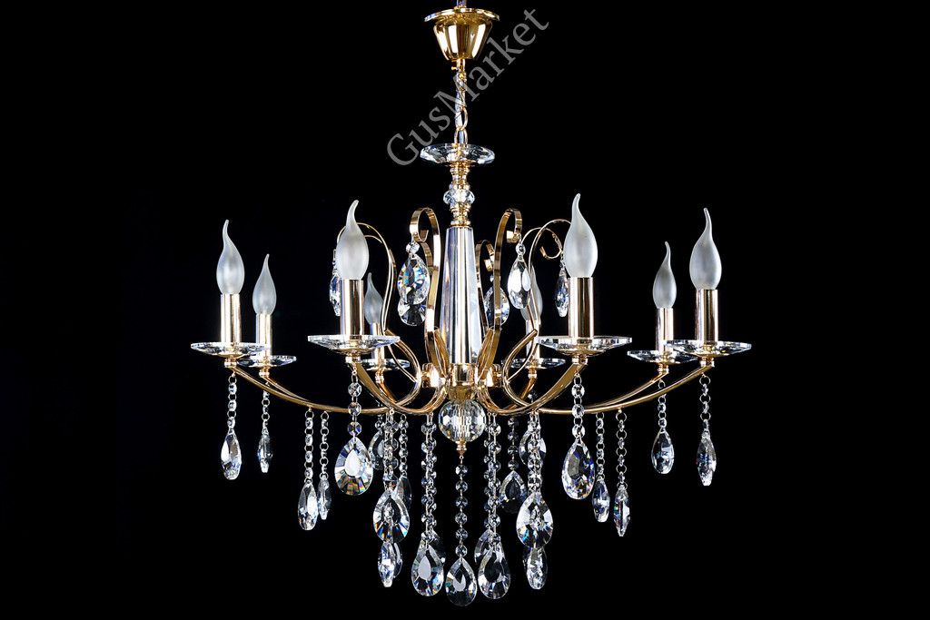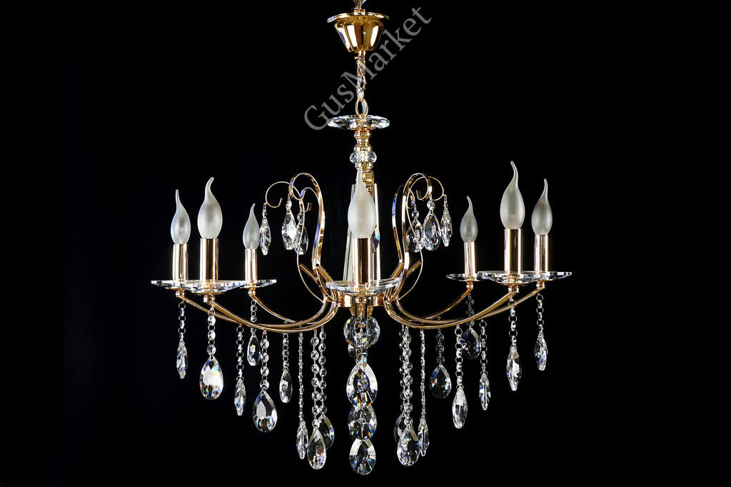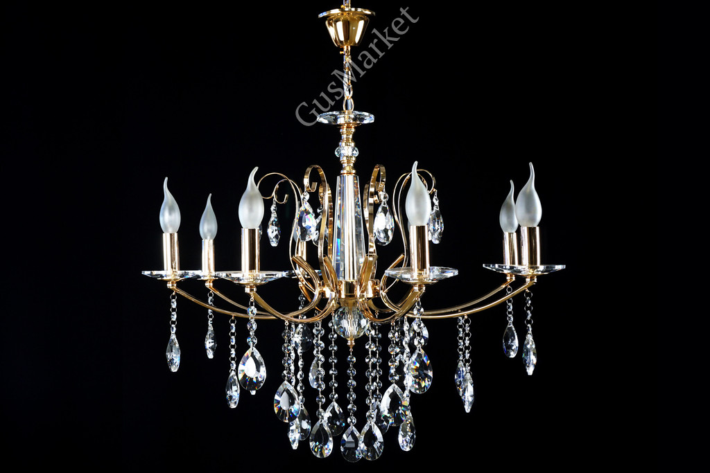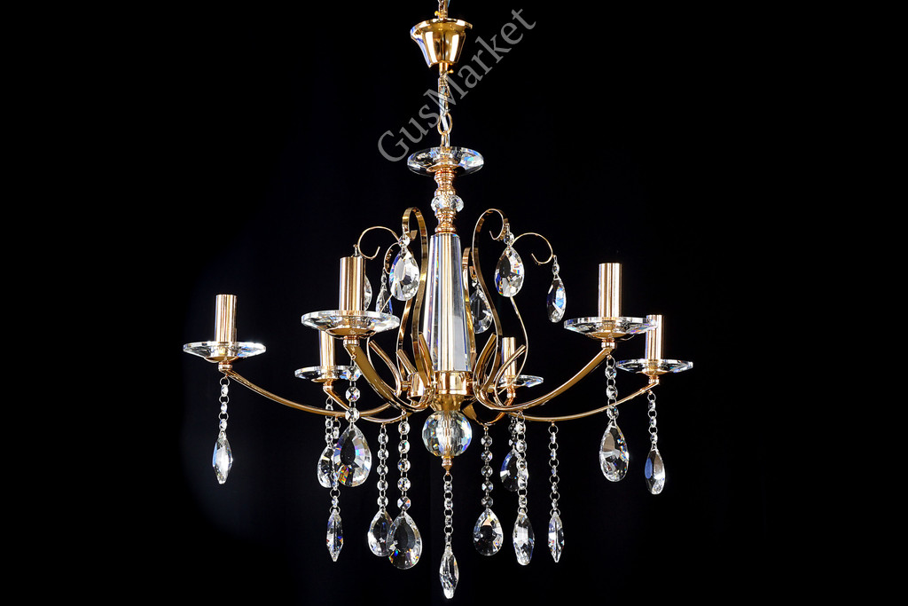 Классическая люстра в золотистой фурнитуре. Украшена хрустальными элементами, которые придают ей изысканный и элегантный вид. Эта люстра идеально подойдет для любого интерьера, будь то гостиная, спальня или кухня. Люстра изготовлена из высококачественных материалов и имеют долгий срок службы. Кроме того, они легко устанавливается и не требуют особого ухода. Если вы ищете люстру, которая будет не только функциональной, но и красивой, то этот вариант - идеальный выбор для вас. Закажите ее прямо сейчас и наслаждайтесь ярким светом и стильным дизайном в своем доме!