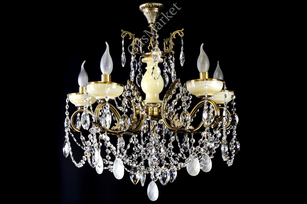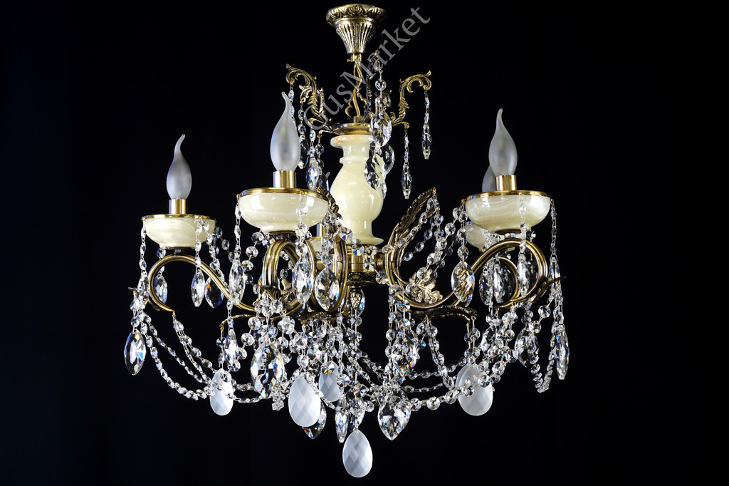 Хрустальная люстра Бронза с ониксом 5 рожков