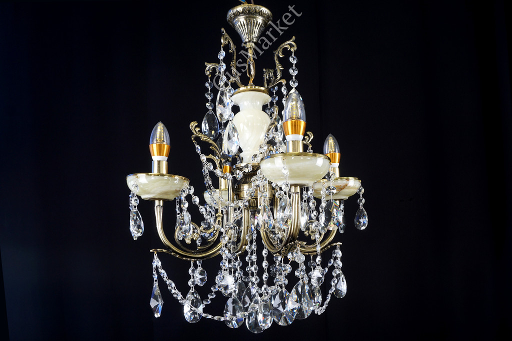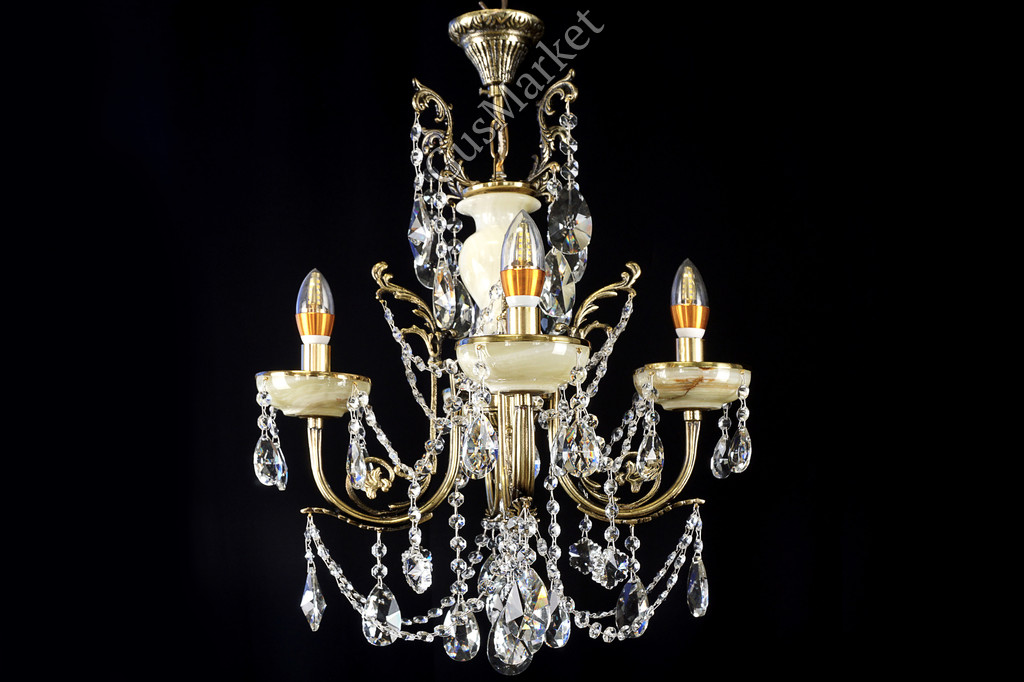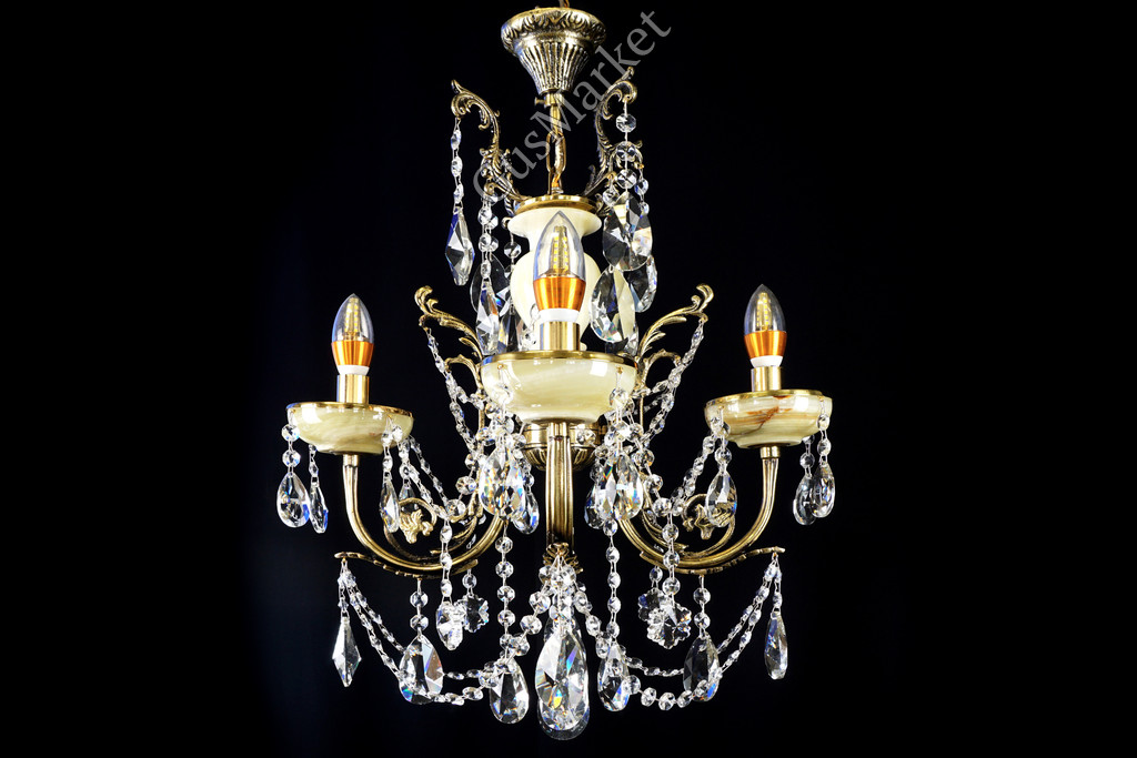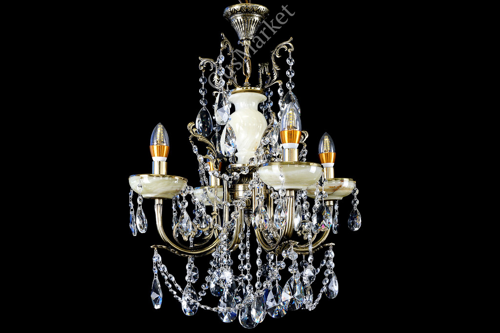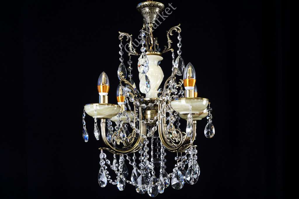 Хрустальная люстра Бронза с ониксом 4 рожка