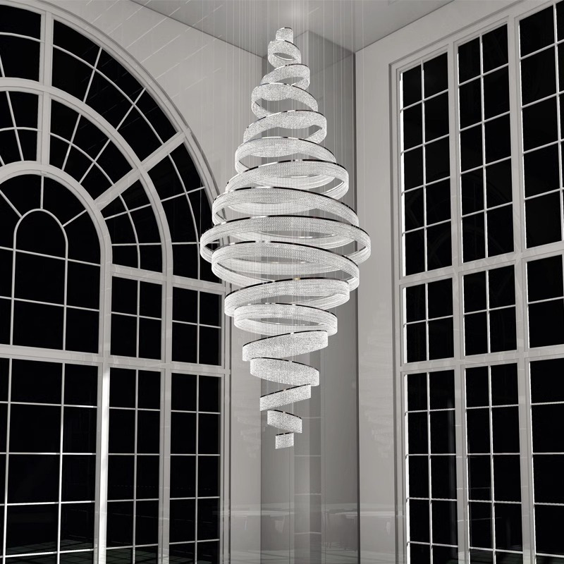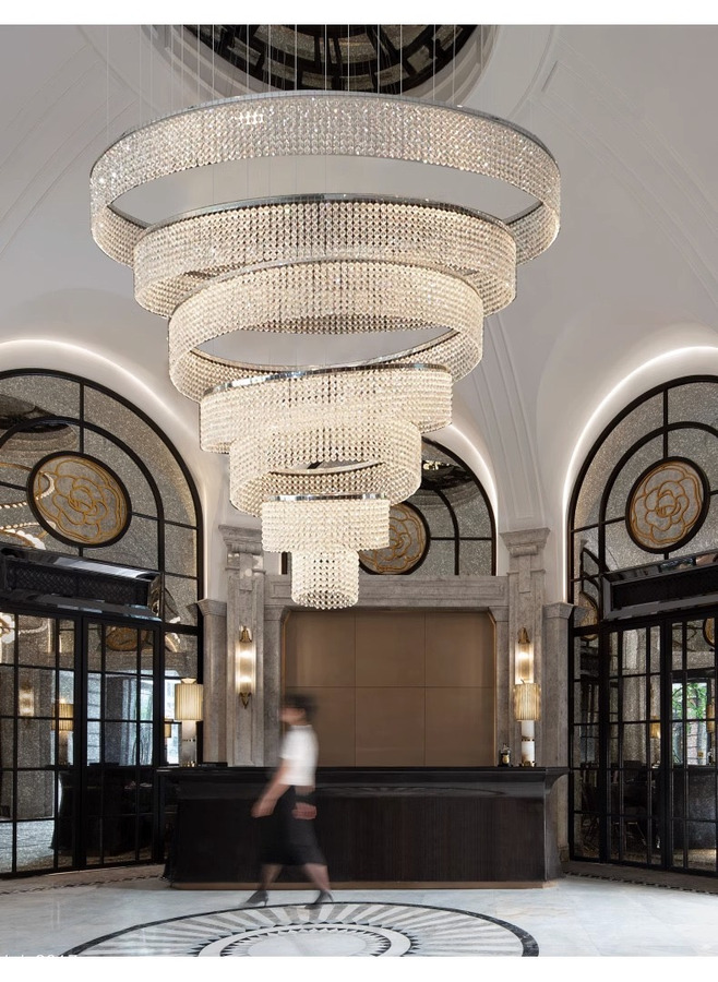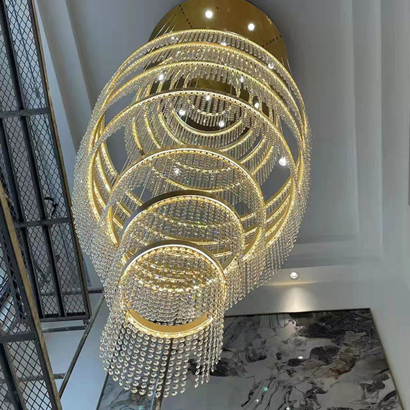 Люстра наборная, можно указать нужное количество ярусов. Кольцо от 200 мм до 1200 мм, с шагом 200 мм. Кольца независимые. В каждом кольце диодная лента. Дополнительное освещение в верхней платформе. Цвет хром, золото.