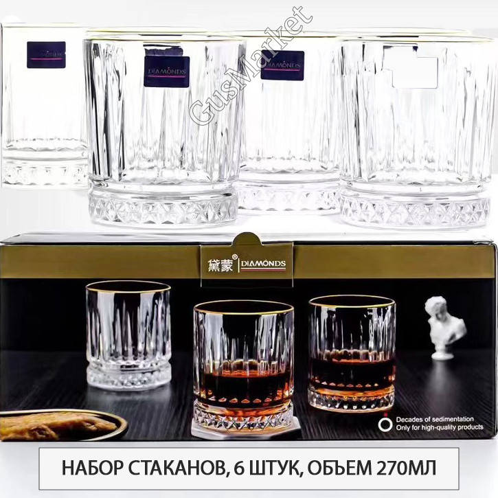Набор состоит из шести стаканов, материал стекло. Стенки стакана толстые, доходят до 4 мм, а дно до 15мм, что позволяет сохранить оптимальную температуру виски и раскрыть все ноты его аромата. Стакан тяжелый и качественный. Набор прекрасно подойдет для подачи виски и других холодных напитков. Их оценят как любители классики, так и те, кто предпочитает современный дизайн. Набор подойдет для сервировки стола и станет отличным подарком к любому празднику.