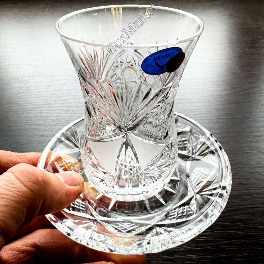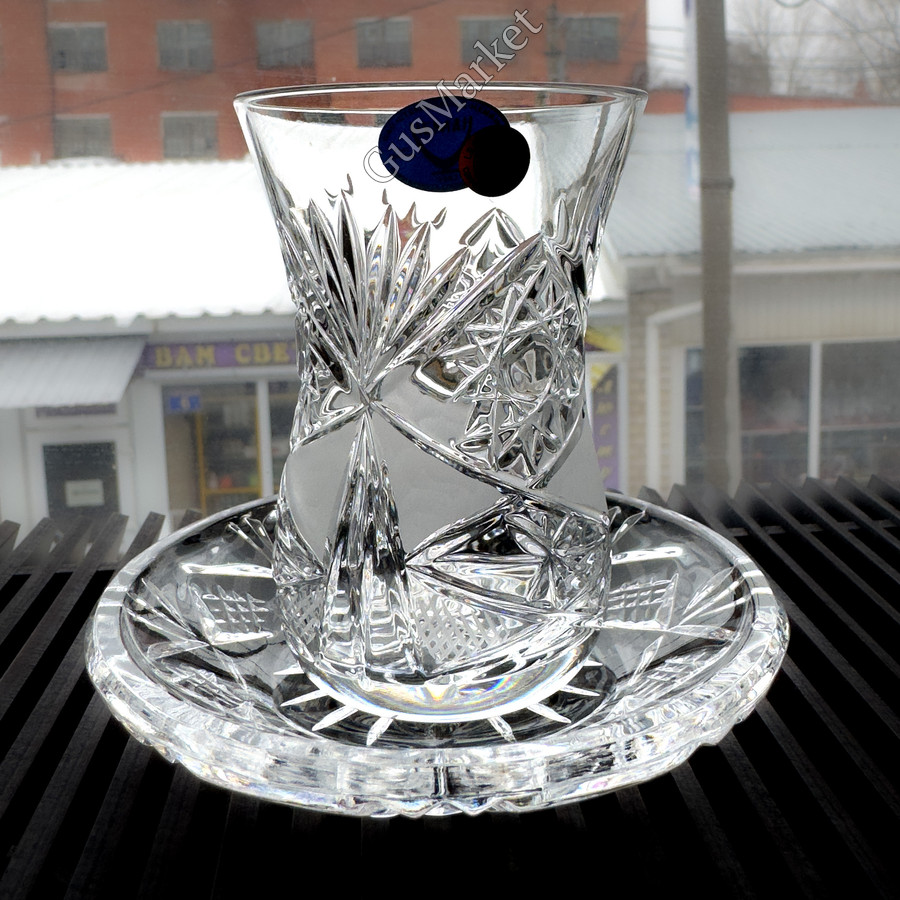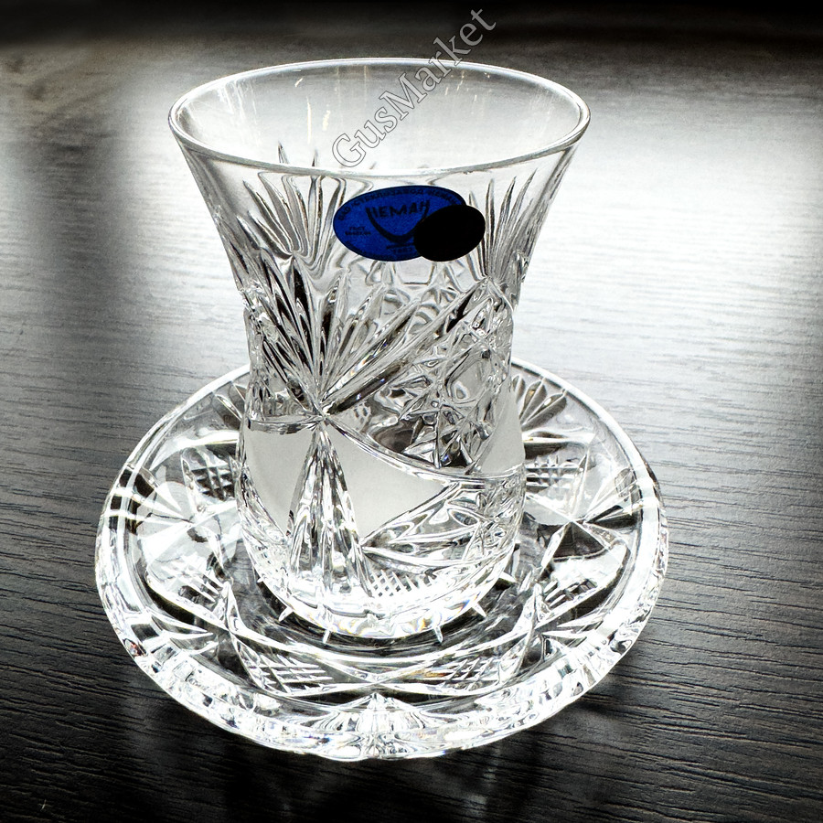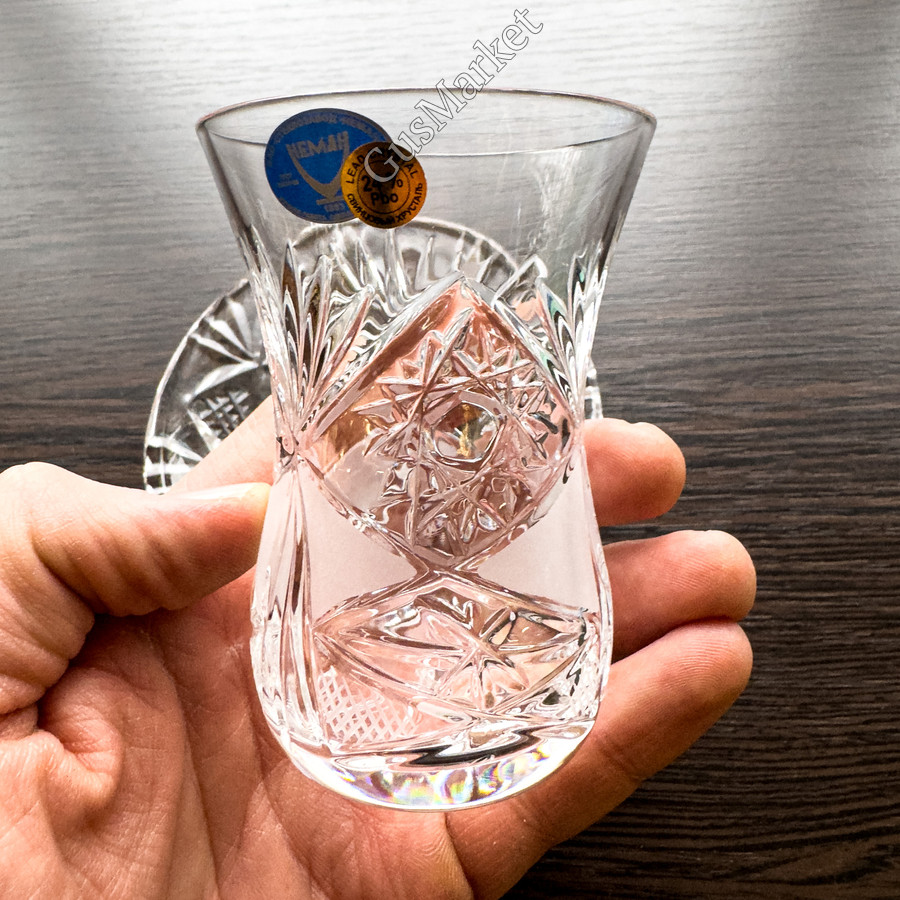Набор состоит из 6 хрустальных стаканчиков Армуду (Неман) и 6 блюдец (Бахметьево), хрусталь. Блюдце d110 мм. Будет отличным подарком.
