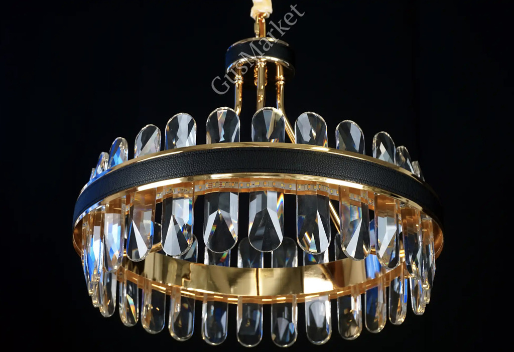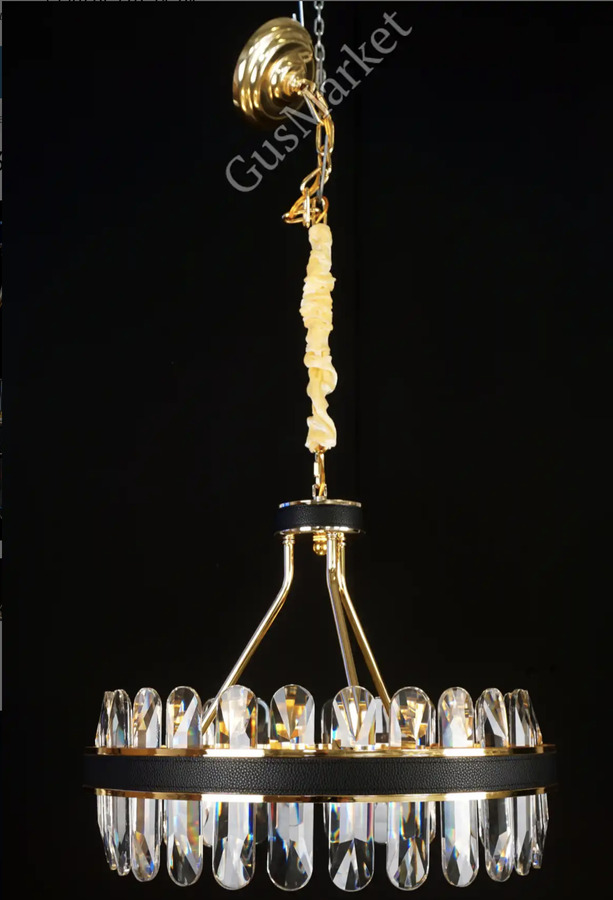 Люстра с хрустальными элементами. Свет - две диодных полосы. Поставляется в разобранном виде. Цепь можно делать короче и длиннее. Люстра производство Китай.