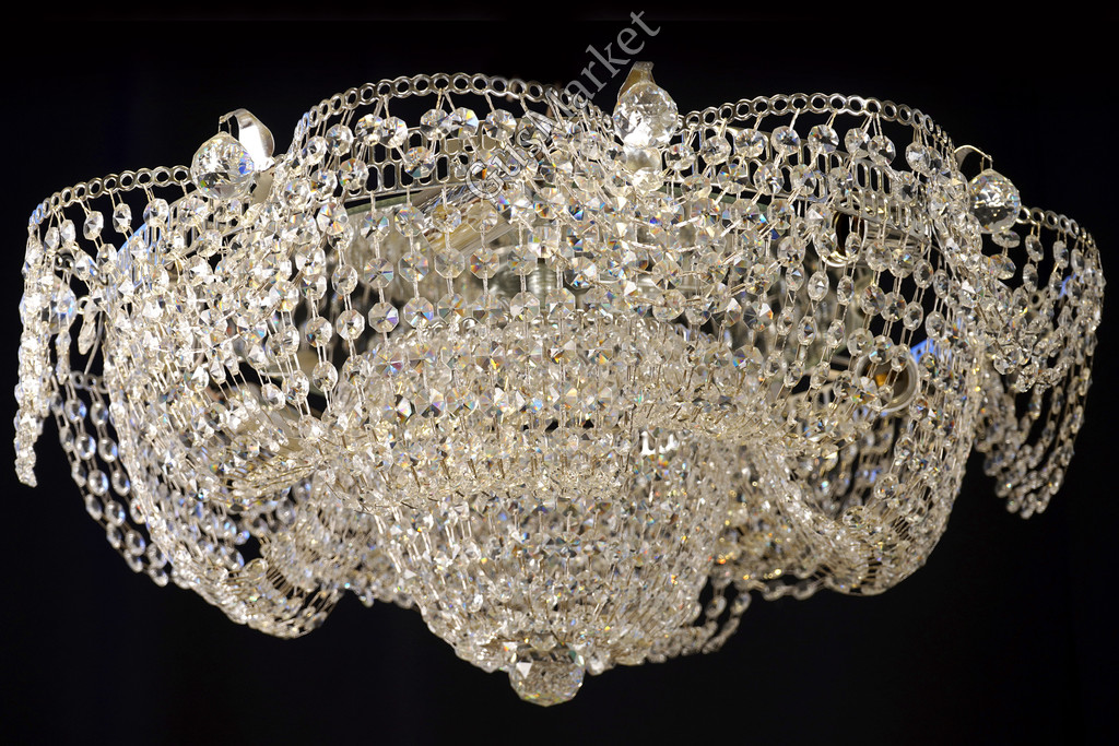 Хрустальная люстра "Лотос", с зеркалом по диаметру. Крепление "крючковое". Производство г. Гусь-Хрустальный.