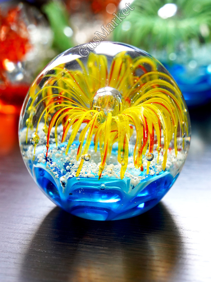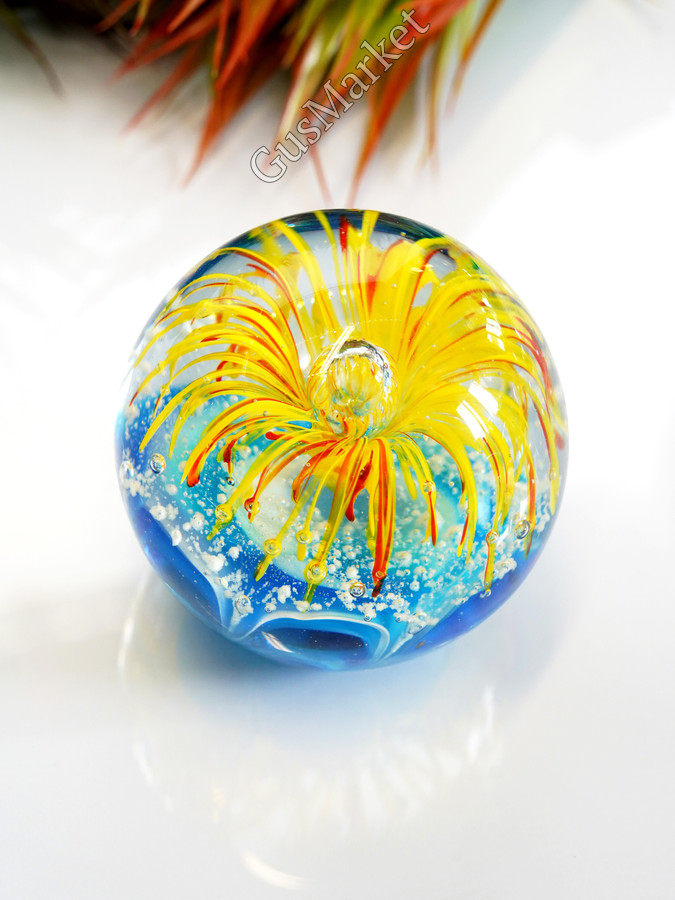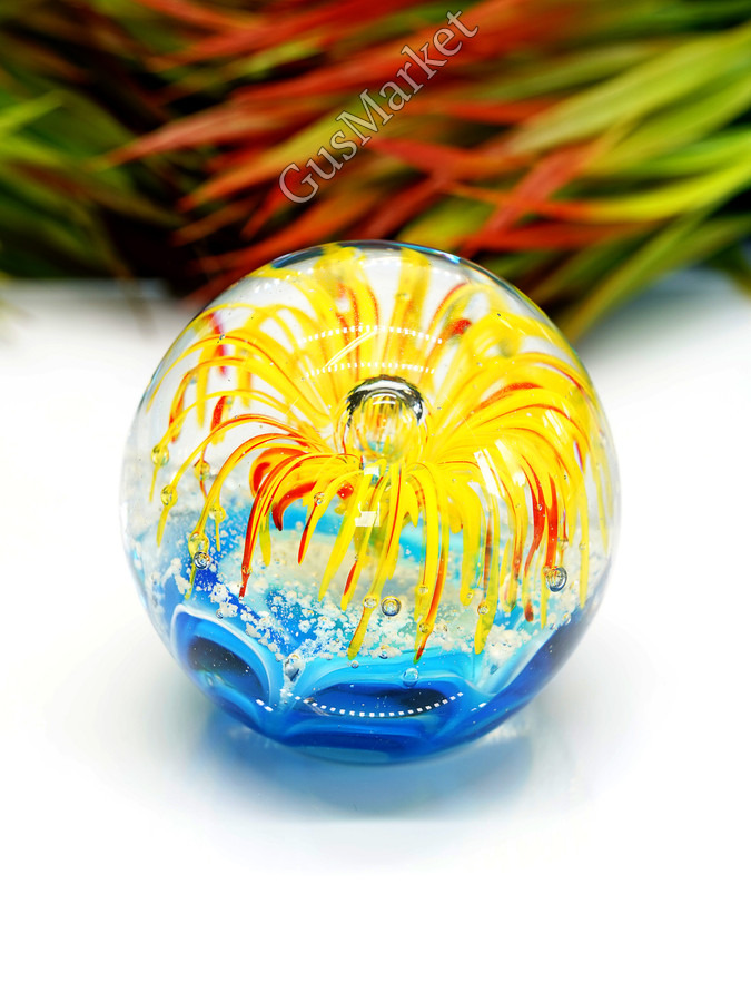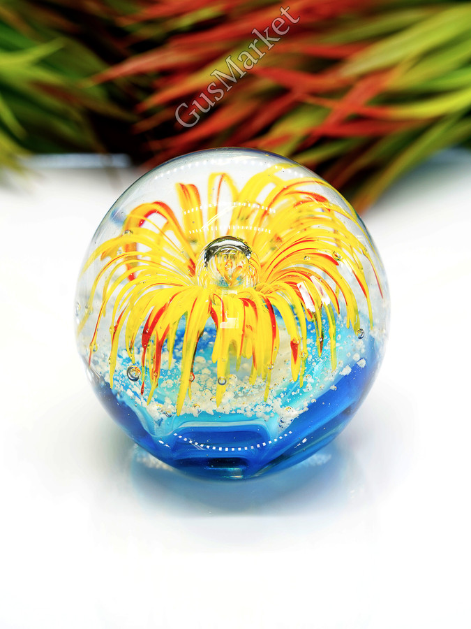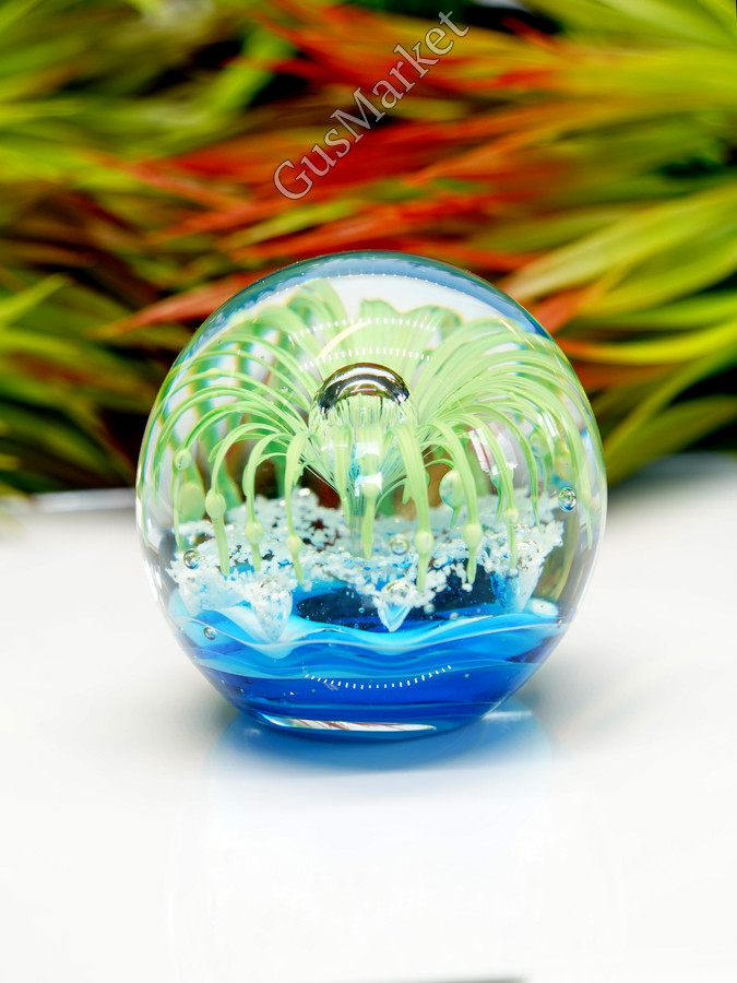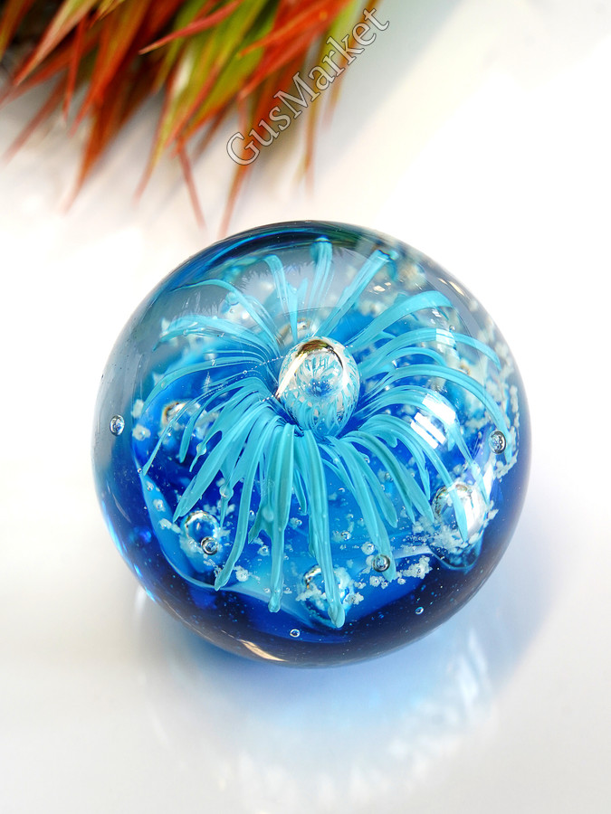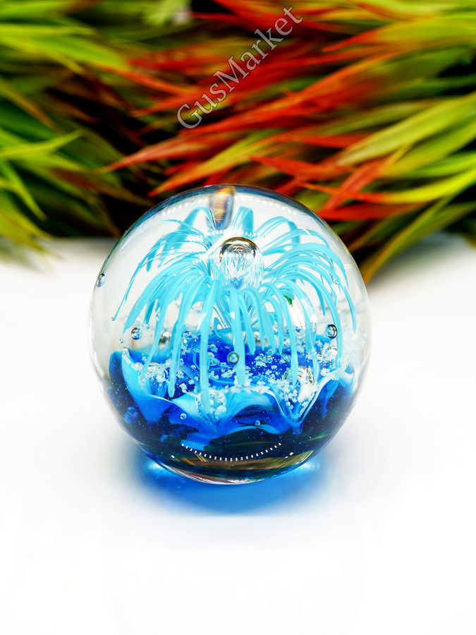 Стеклянная фигурка Морской шар - это уникальный и красивый предмет интерьера, который придаст вашему дому особую атмосферу. Этот декоративный элемент выполнен из высококачественного стекла, что обеспечивает ему долгий срок службы и прочность. Фигурка имеет высоту 9 см, что делает ее удобной для размещения на полках или столах. Она выполнена в синем цвете, благодаря чему она отлично дополнит любой интерьер. Стеклянная фигурка Морской шар - это не только красивый декоративный элемент, но и символ удачи и процветания. Она будет отличным подарком для себя или близких людей.