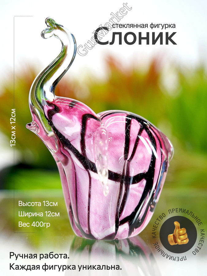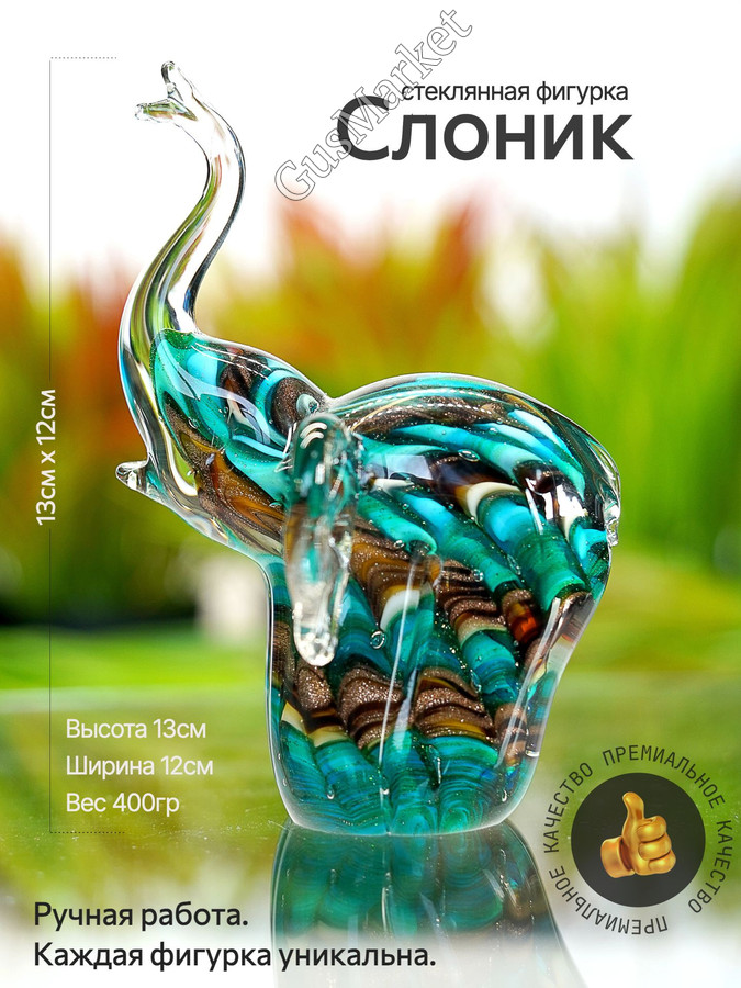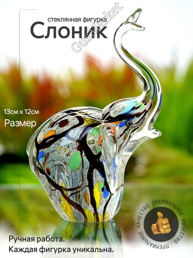 Стеклянная фигурка слона Изготовленная из стекла высокого качества, эта фигурка отличается особой красотой и изяществом. Она не прозрачная, но её цветные линии и формы создают выразительный и глубокий образ. Тяжёлая и основательная, фигурка обещает стать долговечным элементом вашего дома. По фэншуй слон символизирует мудрость, силу и стабильность. Размещение фигурки в вашем доме может привлечь положительную энергию, успех и благополучие. Она станет символом защиты и надёжности, способствуя гармонии в жизни. Цветная стеклянная фигурка слона станет ярким акцентом в вашем интерьере и придаст ему особый шарм. Она особенно подойдёт для любителей восточных мотивов и гармоничной атмосферы. Выберите стеклянную фигурку слона и добавьте в свой дом частичку мудрости и стабильности. Это изделие из стекла высокого качества идеально подойдёт для оформления интерьера в любом стиле. Оно станет отличным подарком для близких и друзей, ценящих уникальные и оригинальные вещи.