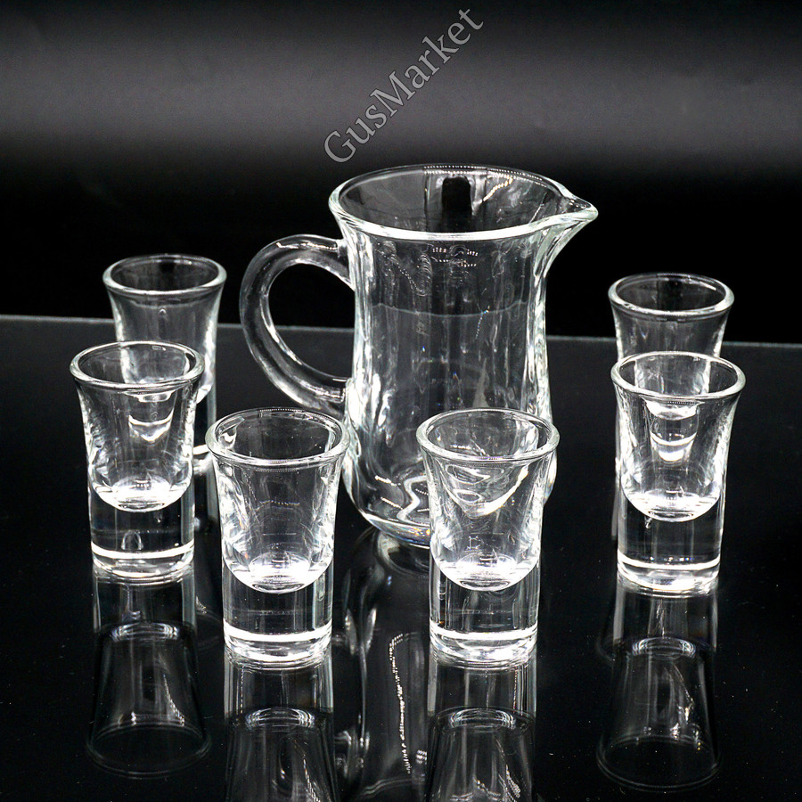 Набор шотов + Графинчик - идеальный выбор для тех, кто ценит элегантность и изысканность в сервировке стола. Этот набор состоит из 6-ти очаровательных шотов с толстым дном и оригинального графинчика, который станет не только украшением вашего стола, но и удобным инструментом для разлива напитков.