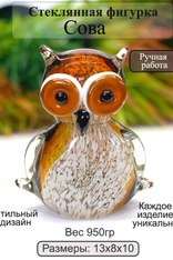 Стеклянная фигурка «Сова» Позвольте этой изящной стеклянной фигурке стать частью вашего дома и принести в него атмосферу мудрости и гармонии. Сова — это не просто украшение, это символ, наполненный глубоким смыслом. Сова издавна ассоциируется с мудростью, интуицией и проницательностью. Она символизирует глубокое понимание мира и способность видеть то, что скрыто от других. Стеклянная Фигурка «Сова» станет прекрасным напоминанием о важности размышлений и самосовершенствования. Эта фигурка из стекла — изысканное украшение для вашего дома. Её элегантный дизайн гармонично впишется в любой интерьер, добавляя нотку утончённости и стиля. Разместите фигурку на полке, комоде или столе, чтобы создать атмосферу гармонии и спокойствия. Она станет ярким акцентом в вашем доме и привлечёт внимание гостей. Фэншуй В философии фэншуй сова символизирует защиту и благополучие. Размещение стеклянной фигурки «Сова» в вашем доме может способствовать созданию гармоничной атмосферы и привлечению положительной энергии. Выберите для неё место, где она будет «охранять» ваш дом и приносить удачу. Пусть эта фигурка станет не только украшением, но и защитником вашего пространства.