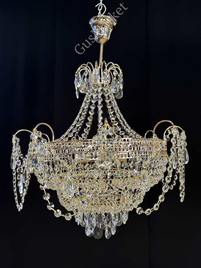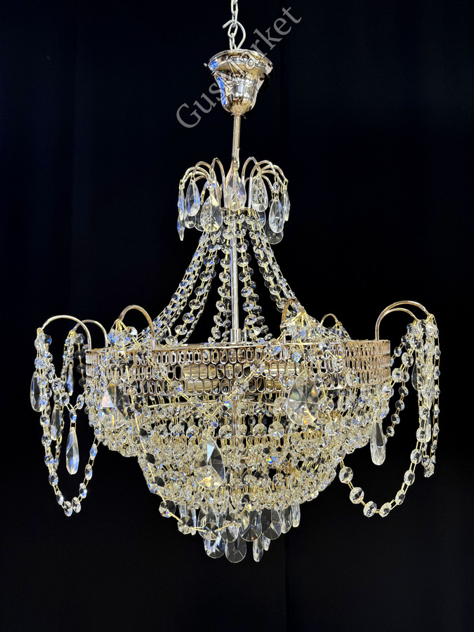 Хрустальная люстра "Натали ", производство г. Гусь-Хрустальный. Крючковое крепление. Поставляется в собранном виде Сборка на золотой скрепке.