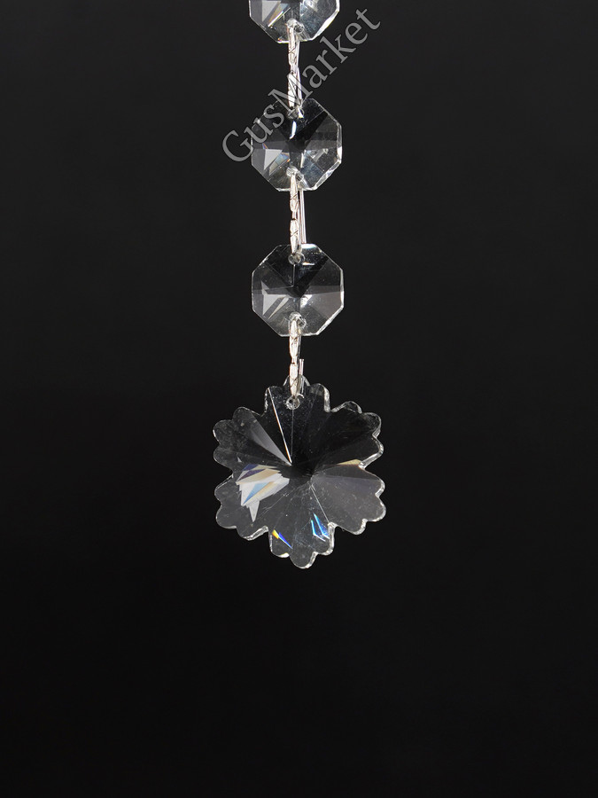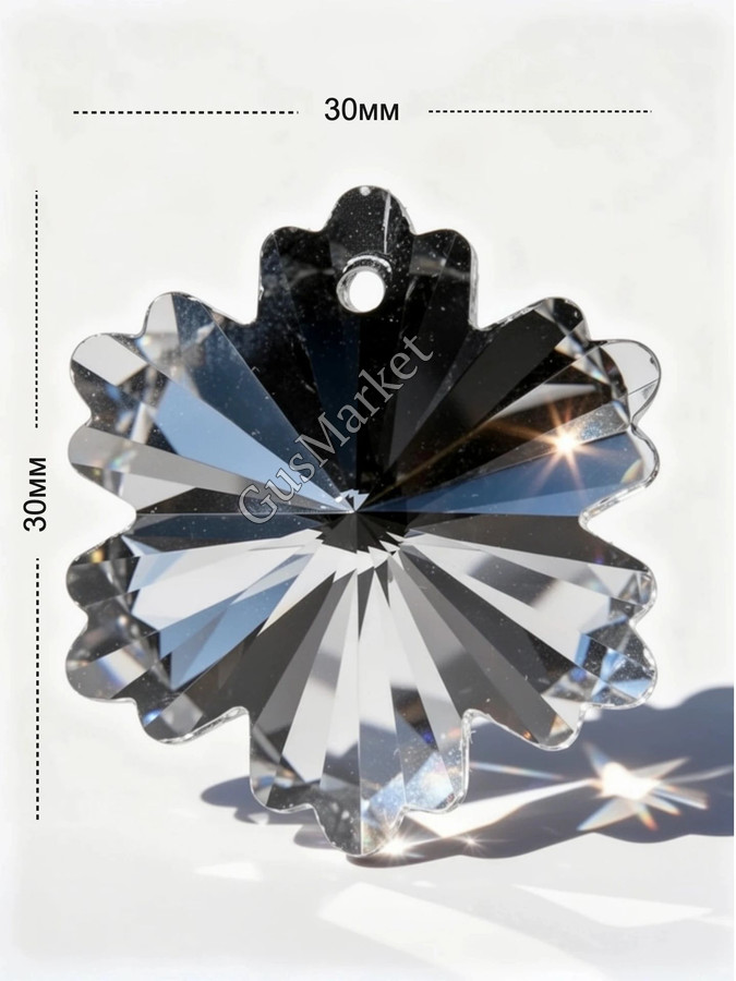 Изящная стеклянная подвеска, напоминающая маленький цветочек или снежинку, станет изысканным украшением вашего дома. Её отличная прозрачность и утончённая форма придают особый шарм и лёгкость интерьеру. Есть вариант на 1 и 2 отверстия. Можно использовать как завершающую, так и для соединения других элементов.